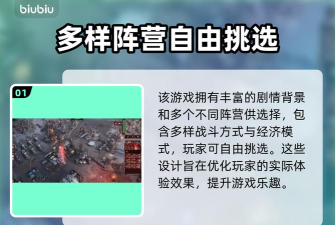 该游戏有着丰富的剧情背景,同时分布了多个不同的阵营让大家来进行选择,多种不同的战斗方式以及对应的经济模式,让玩家可去自由挑选,这些都是为了能优化小伙伴们实际的体验效果。