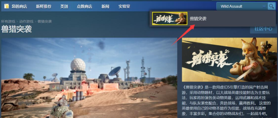 《兽猎突袭》的英文名叫做《Wild Assault》,无论是中文名还是英文名,在steam国区上都可以通过搜索找到它。但是如果输入搜索框中不能显示该游戏的预览,就说明是网速太差了,需要使用工具提速才行,不然搜索页面可能都打不开,更不要说还要在游戏里多人对战了。