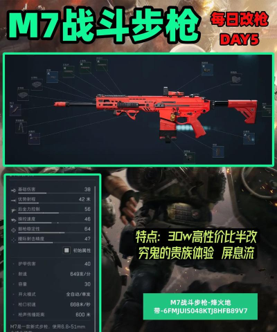 首先,让我们来了解一下M7的基本特点。这款步枪以均衡的性能和广泛的适用性著称,具有较高的射速和良好的精度,不管是中距离交火还是快速反应的近距离战斗,M7都能够胜任。但是,玩家想要要真正发挥出M7的潜力,那么一定要进行合理的改装。
