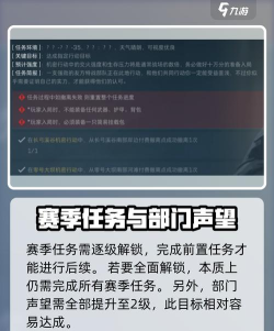 赛季任务中不少是需要完成前面的才能解锁后面的,所以本质上还是要完成全部的赛季任务才能解锁。与此同时,部门声望也需要全部达到2级,这个倒不是很难。