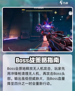 之后就是boss会带着原地不断释放无人机进行攻击,而玩家先不要攻击头部,使用冲锋枪先清理场上所有的无人机,清理完毕对准boss的头部进行输出,虽然输出不高,但是能造成巨大的危险,大概boss处于4分之一血,boss会重新行动。