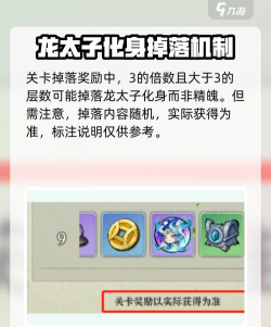 ③关卡掉落奖励,3的倍数且大于3的层数,出现龙太子化身而非精魄,其实下面是有标注的“关卡奖励以实际获得为准”,就是龙太子那个获得非常随机,并不一定。