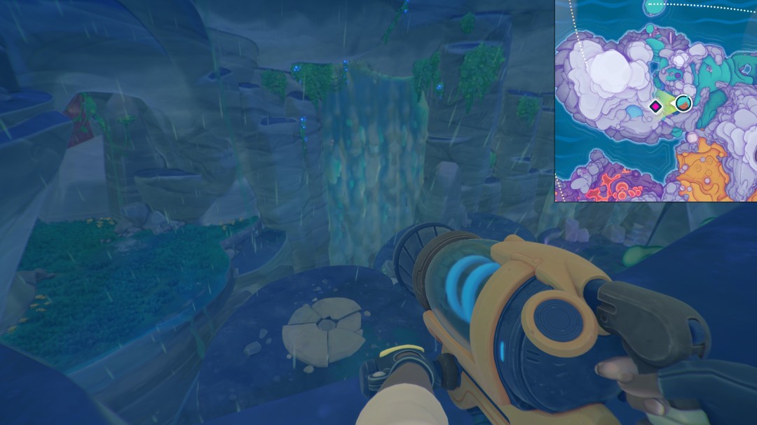 《史莱姆牧场2》里面有很多成就,水帘洞天就是其中的一个,它是一个探索游玩类的成就,获取的方式是经典瀑布藏东西,但并不容易发现,因为入口需要从上方飞进去,开启大门需要炸弹、喵喵、蝙蝠结晶各一个。
