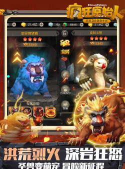 疯狂原始人手游推荐展示了形态各异的原始人形象,打破了玩家对原始人的观念认知。围绕着原始人的等级提升和捕猎技能强化设计了很多的战斗冒险任务,训练出无比强大的原始人是一项艰巨且需要有耐心的事情。