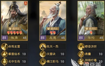 那么在三仙盾这个阵容里面,他跟左慈搭配之外,大家还可以在最后一个位置上面放上张角,这样的阵容当中,张角他能够跟左慈放在一起输出,他们俩的输出有了华佗来负责一个后援的话,整体上面攻击和防御还有续航都是有足够兼备的能力,所以在开荒时期的话是小编比较推荐大家玩这个阵容的,当然如果没有张角这个角色的话,大家也可以替换成司马懿放在这个阵容里面,此时的话带来带来的整体阵容效果就是中毒盾的一个阵容,核心放在其中的话,因为司马懿是有一定指挥能力的,所以此时为阵容进行搭配的话,也会带来一些指挥类型的优势加成。