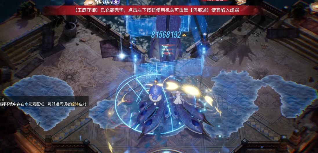 在前半场需要将左右两个触手都打完才能打中间的,提提亚减抗为单体,因此可以选择挨个快速打掉。先在右边铺水减抗,等其技能好了就立刻用,要多打一技能切分音才能攒的快。乐无异注意保持屏障即可,打掉后就立刻转左边,利用同样的方法快速打掉,直接就要开始打中间的。