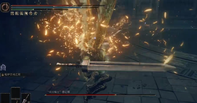 名为巨剑的大型武器,在满级厚重质变下,力量补正为A,武器本身模型较长,攻击范围广,无论是挥砍还是劈斩都能覆盖较大区域,可轻松攻击到敌人,刚入手攻击力就有287。力量补正C对于力量型角色来说,是前期必备的高伤害武器,搭配狮子斩战灰能大大提升攻击距离,且攻击时自带霸体不易被打断。选择血质变后,配合出血异常效果可快速压低敌人血线。