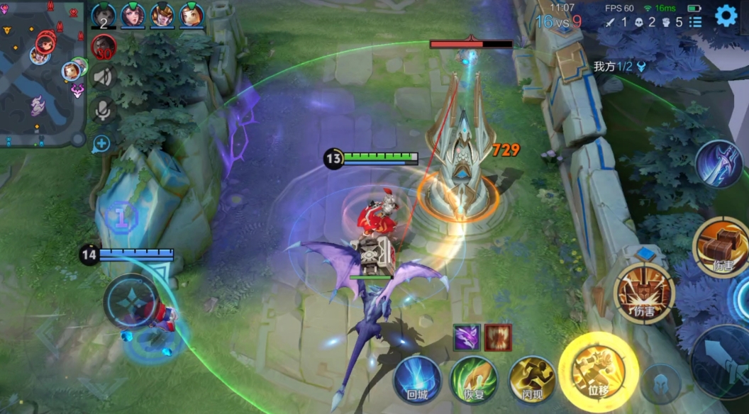 一技能是向指定范围突进并强化下次普攻为重击,重击是范围伤害,能造成额外伤害并减少百分之五十的移速,突进能穿过一些比较薄的墙。二技能是钟无艳高爆发伤害技能,举起锤子蓄力砸向地面,蓄力时间大概为一秒钟,范围中心的敌人还会受到双倍伤害,该技能的范围伤害其实并不是指示器的扇形而是圆形。