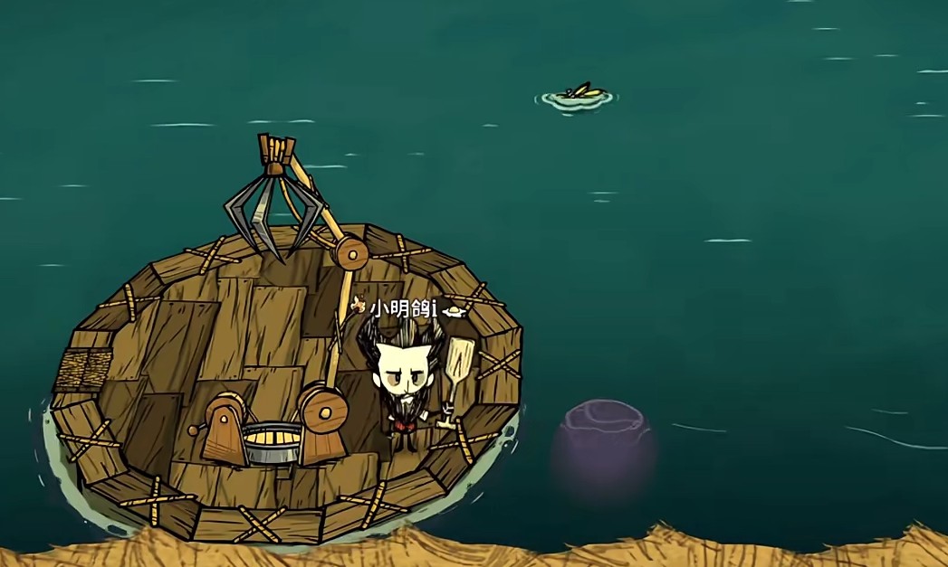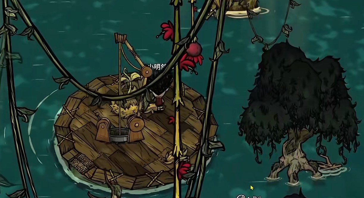 需要注意的是在摘掉无花果后,是会有特殊蜘蛛出现,为了方便后续前来此地被蜘蛛干扰,玩家可以用火烧掉巢穴,留下蜘蛛巢残骸不管即可防止蜘蛛刷新。水中木种子和大理石雕像一样,属于较重的物品,并且不能放在背包栏中,除了将船只划到离家较近的位置,在需要走的路径上建议通过牛、传送道具快速搬运。来到家附近的水域,借助夹夹绞盘将种子丢到海里,能看到水中种子的阴影,也就可以正常生长了。