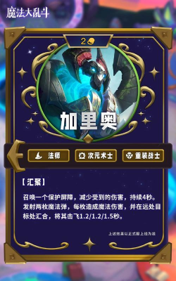 《云顶之弈》S16加里奥技能鼓舞之力,被动每3次攻击在圆形范围造成魔法伤害。主动冲刺进人群鼓舞2格内友军,提供4秒护盾,砸落对敌人额外魔法伤害。解锁需12独特星级德玛西亚。还有德玛西亚、正义巨像羁绊效果。