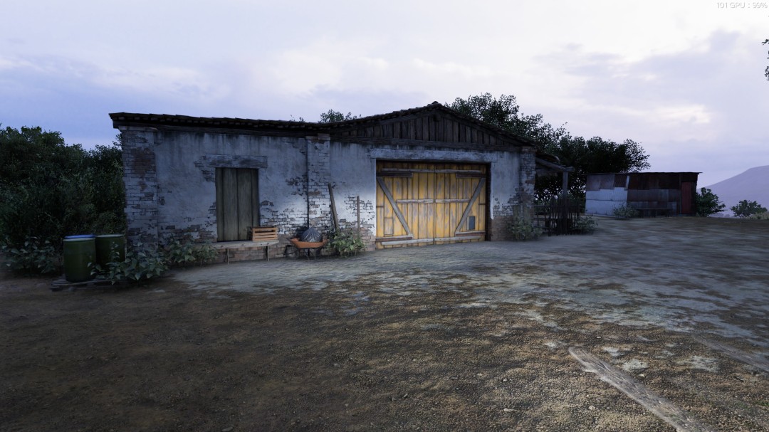 来到市区东北部,这里向外延伸出了两条道路,车房就在这两条道中间的区域里。右侧的公路上会有一条小路通向车房。