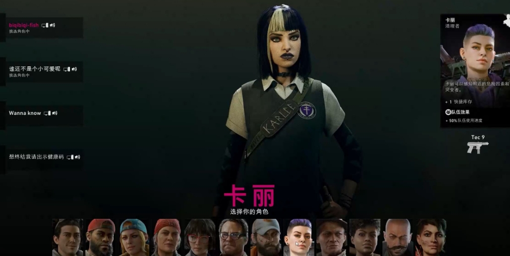 卡丽自带感应附近危险因素和增加快捷栏库存,团队天赋是增加队伍使用速度,自带武器是AK和TEC9冲锋枪,游戏中有一些操作需要长按来执行,执行时会有一个进度条,卡丽自身的天赋能加快这个进度条的执行速度。而且该效果能无数次叠加,也就是说如果卡牌全点了加快速度的话,进度条执行速度就会变得特别快,尤其是第一章最后一关开炮打洞穴时会有很好的效果,并且第一章最后开炮打中食人魔BOSS会解锁一个成就。