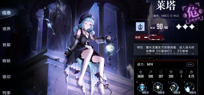 莱塔的特性是进入战斗后会携带引路命灯,这个引路命灯是莱塔的核心机制,灯能照亮周围菱形两格的范围,可以跟随携带者移动,战斗开始是莱塔提着灯,她提着灯时每秒会额外回复一点能量,但灯没有亮时就算提灯也无法触发回能效果。莱塔的狂厄深化是能量速度提升百分之十五,必杀是可以把命灯交给一个队友,该技能不需要莱塔满能量,只要灯是亮的就可以使用,此时灯不仅有治疗效果,还能给范围内队友提供护盾。