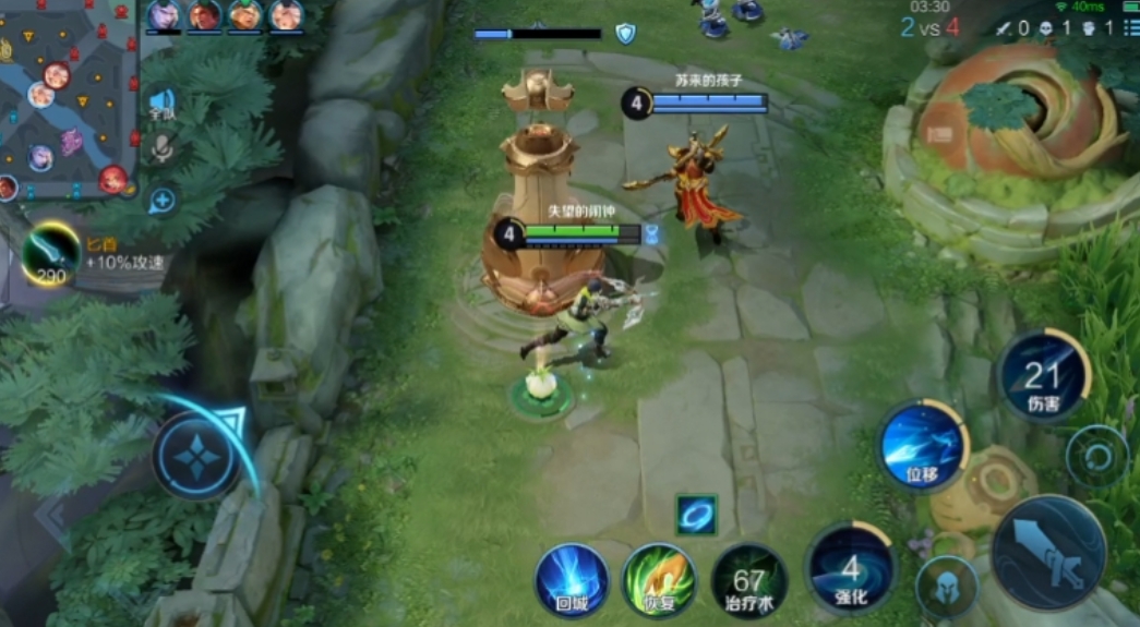 敌方中路视野如果第二波到达时没有看到中路法师,就不要过分前压防止被抓,第二波线若敌方打野来蹭中线,就根据打野来的方向和去的方向判定会不会来抓自己。清理第二波线时远离河道靠近墙体,为自身留下容错空间,当敌方中路或打野来抓时,可以更快用二技能跟敌人拉开距离避免阵亡。四级后前期大招伤害不高,只能用来塔下消耗或干扰敌人吃线,来抓的敌人比较多时,大招还能用来吃线。由于二技能位移不能主动释放,支援能力也较弱,因此最好不要用来在前期作战或者转线,只需要快速清线吃掉周边资源就可以,每一波线刷新时要及时用一技能覆盖所有我方的兵线,获得更多流来加快清敌方的兵线,不要等兵线交汇再开一技能。