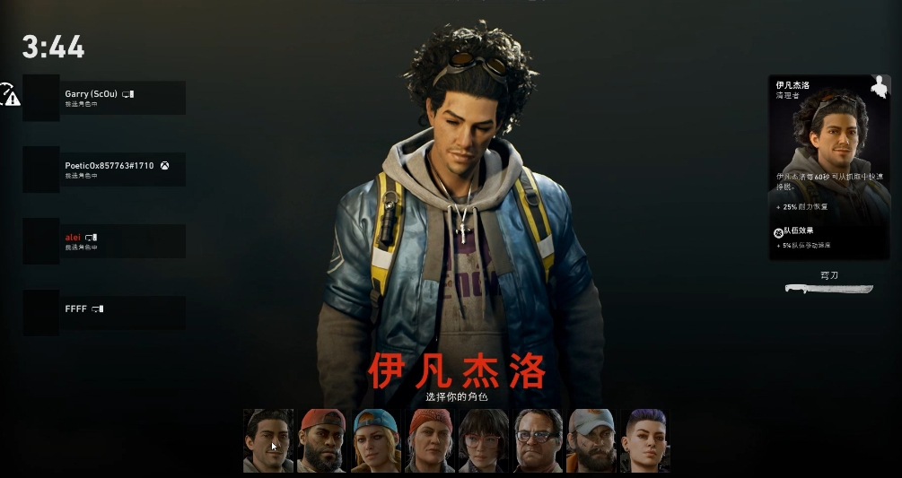 游戏中每个角色都有独特的天赋和相应的团队增益天赋,伊凡杰洛自带挣脱和自身耐力回复速度增加。他的团队天赋是增加团队移速,自带的武器是乌兹和砍刀,他是一个拥有一定自保能力和灵活移动能力的人物,自身天赋挣脱在游戏中也有对应卡牌,而且这张卡牌是自带挣脱冷却CD缩减,他的被动也能吃到这个冷缩的加成。从他的技能和天赋来看强度不算很高,但适合各种卡牌流派,是前期首选角色,后期选择优先度不高。
