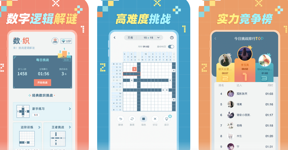 基于经典Nonogram(像素画谜题)规则开发的数字逻辑游戏。每关提供行列数字提示,玩家需通过交叉排除法推导出唯一填色方案。全关卡超千道,覆盖节日、自然、机械等十余个主题图库。规则易上手但解题过程高度依赖链式推理与假设验证能力,是训练演绎逻辑的经典载体。