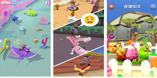 将跑酷机制与动物收集养成深度结合的创意玩法。玩家化身牛仔,在动态生成的沙漠、草原等生态场景中高速奔袭,通过预判动物奔跑轨迹与节奏,完成套索投掷操作。每种动物具备差异化AI行为模型——如羚羊急停变向、大象横冲直撞、鸵鸟高频小步频——大幅提升操作维度与策略纵深。核心循环清晰:闪避障碍→锁定目标→时机出手→驯养入库,兼顾速度感与精度控制。
