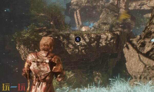 途经一颗蓝色的树,到断崖的位置,利用对面山壁上的钩索到对面去。