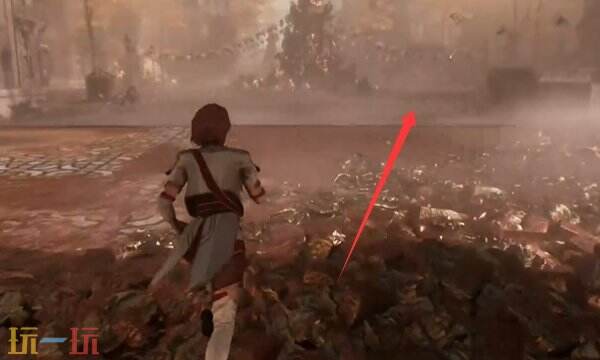 往前走,穿过广场,这边有断裂的地面。