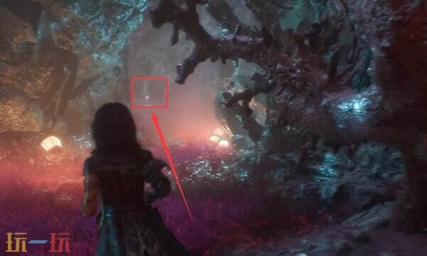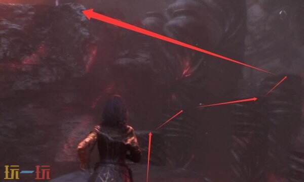 往前走,沿途清怪,到下面这个裂缝这里,往边缘走点,有个钩索提示,利用钩索到对面去。