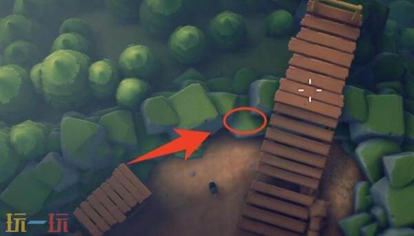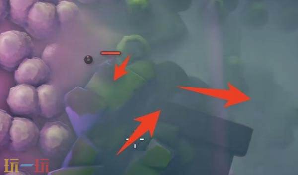首先来到地图这个位置,一直往这个石头上翻滚。