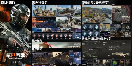 随着《使命召唤:黑色行动7》第一赛季于2025年12月5日正式开启,游戏迎来大规模内容迭代与系统性优化。本次更新覆盖多人对战、丧尸模式、战争地带及开放世界任务四大核心板块,涵盖新地图、新模式、新武器、新技能体系以及多项底层体验改进,旨在提升战术深度、探索自由度与竞技公平性。