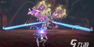 BOSS还有技能“裂石风暴”,可以旋转释放沙尘暴,持续推开玩家,有的区域甚至可以将玩家推下平台。这时候要快速向遗迹装置集合,并且站在蓝色圈范围内获取移速加成,然后持续靠近首领这样速度对冲来避免被推下去。如果场地里有遮挡物,则可以利用来卡位。