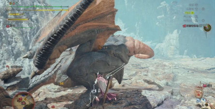 骑乘系统是本战核心机制:成功骑乘后,连续攻击头部可触发额外眩晕判定,累计3次后强制倒地。倒地期间需迅速脱离攻击范围,待其起身瞬间释放蓄力斩,可最大化利用破绽窗口。倒地结束后,头部素材掉落率提升至85%,包括毒怪鸟的尖喙、毒腺囊等关键材料。