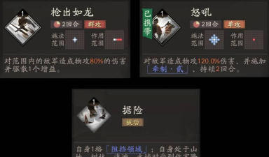 被动“镇军戍边”,敌军在自己2格范围内普攻或释放计策后,对其造成物攻50%伤害的追击,并施加一层持续2轮的“撕裂”,提升到2级,2格范围内每拥有1个撕裂的敌军,物攻物防就提升8%;3级会对普攻的敌军额外施加“缴械”,对释放计策的敌人额外施加“封技”。