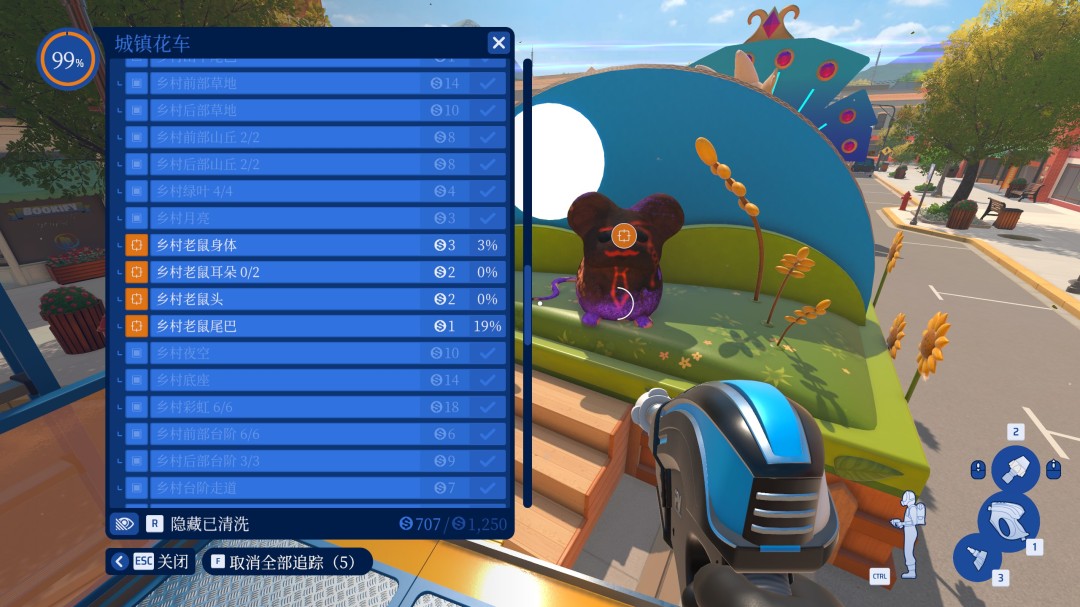 先将花车工作里的其他所有部位都清洗干净后,再去清洗老鼠即可。
