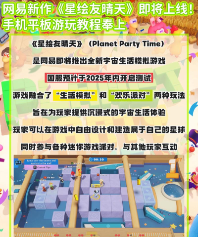当星球经营节奏稍作休整,不妨切换场景,进入充满活力的游戏派对模式。这里没有紧张的资源调度,只有即时组队、轻松互动的欢乐氛围。星绘友晴天派对怎么玩?操作零门槛,强调联机协作与即兴发挥,在碎片时间里释放压力,是兼顾休闲性与社交感的理想选择。