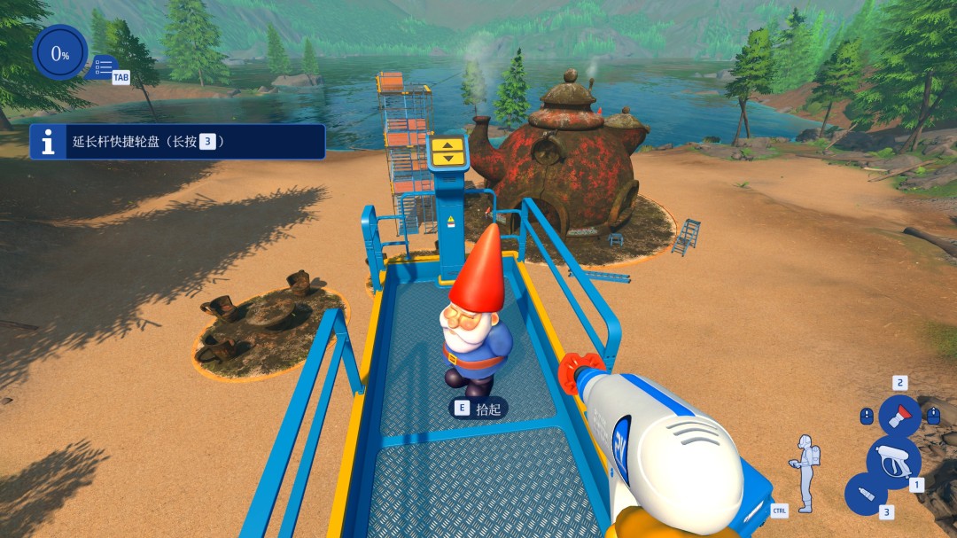 直接将其中一个地精放在剪式升降机上然后升到最高即可。