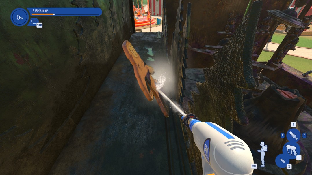 用水枪射中大脚怪正面会让大脚怪后仰一段时间,更方便清洗。