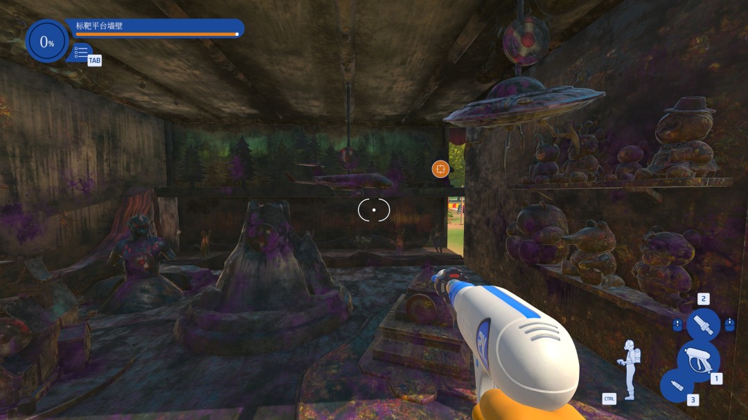 大脚怪在射击摊二层的树后面来回移动,一开始直接将大脚怪清洗干净即可。