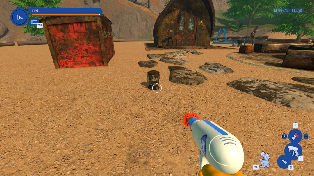 在工作一开始,切换到红色喷嘴,然后先把路边的4个看起来像油漆桶的灯笼清洗干净即可(不包括吊灯)