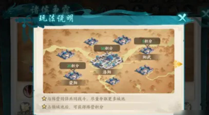 更高规格的跨服GVG活动,以区服单位组成阵营,然后在大地图上抢占城池夺取积分。每周一到周五会各开放一场,持续一个小时。需要开服30天并且等级大于等于60级才能参与,属于是中后期的核心玩法。这个城战玩法稍显复杂,需要参与的阵营以兵营作为据点发展,没有可攻城池都要与本阵营领地相连,因此要掌握断路、包围等战术,改变局面。