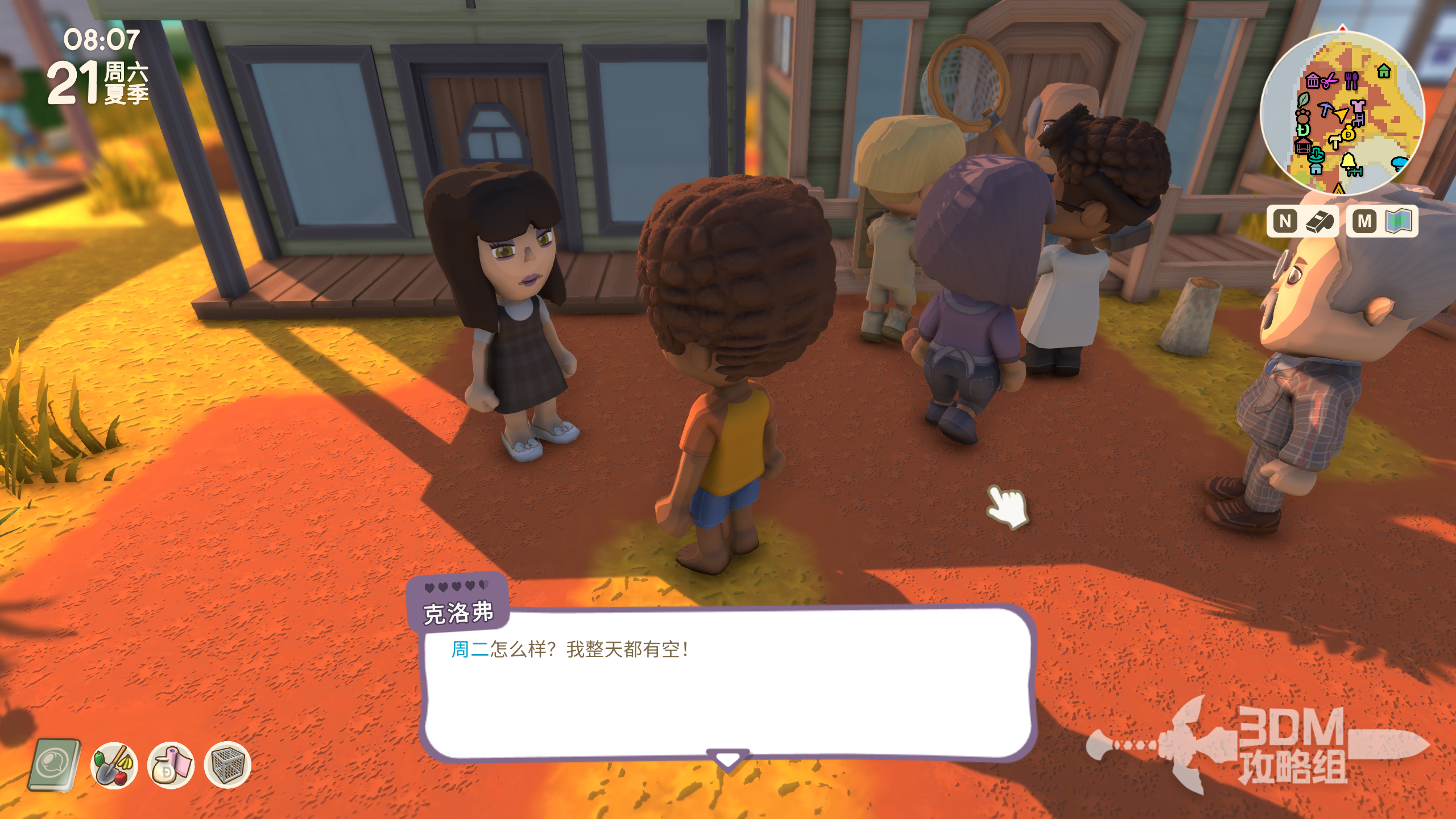 《金垦小镇》中,部分NPC可以与玩家同行,协助完成采集、战斗等任务。通过提升与NPC的好感度,玩家可解锁他们的陪伴功能。同行NPC不仅能提高效率,还能增加游戏乐趣,助力玩家更好地探索和发展小镇。