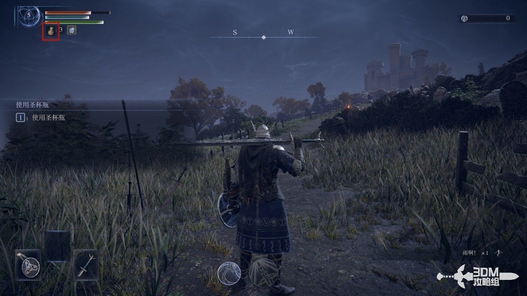数字键1可以使用圣杯瓶,也就是血瓶,左上角的黄色罐子就代表能使用几次。