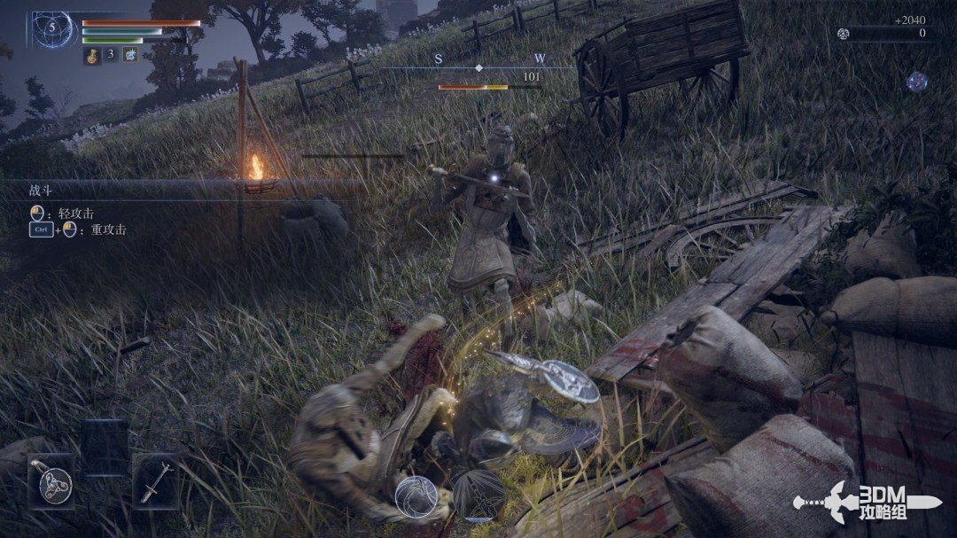 接下来是战斗,轻攻击是鼠标左键,重攻击是CTRL+鼠标左键。击败敌人后能获得卢恩(可以升级或者购买东西)。