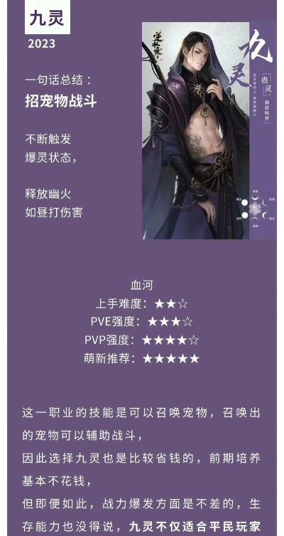 该职业不仅适合平民玩家使用,更适合萌新玩家使用,培养他基本上不需要花费太多的材料,也就不需要玩家们氪金了,而且他的战斗效果比较强,在各个模式下都有着一战的能力,前期用他来刷副本,打主线,也都可以带来比较不错的收获,特别是在副本这方面,在游戏中会有很多的特殊副本,需要使用该职业来进行特殊任务,比如武林风云录里面的老四,不需要血河骑马与boss进行对战,完成之后就能获取到更多的材料,就可以帮助他来晋升了。