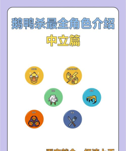 以上全部就是鹅鸭杀这一游戏中的身份汇总整理大全,不知道各位小伙伴们有没有好搞懂以前不清楚的人物角色呢?知道了他们各自的定位后,就需要通过仔细观察细节和聆听发言来判断其他人的身份,保住自己的安全了。希望各位玩家们能够熟能生巧,最终体验到这款游戏的快乐之处!