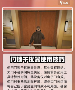 门锁干扰器的作用就是可以自动关闭周围的全部电子,在短时间内无法被打开,但是该道具在使用可能会有一段延迟时间,需要等待一会才能关上电子门,这时候建议玩家最好计算好距离再使用,不然可能出现自己被关在门外的情况。这款道具的实用性很强,对于玩家躲避敌方的追击很有帮助,是潜入方阵营背包里必须要携带的道具之一。