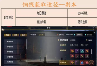 第二种:开启副本,在逆水寒手游中,玩家等级到达46级之后就可以自行开启副本模式,一个副本里边包括的正篇和序篇,直接点说其实就是所谓的主线任务和支线任务,在副本中,玩家要消耗活力丹,完成所有任务之后可以获得五万个铜币和两万个交子,这种获取铜币的途径跟上一种相比,多了等级限制,但同时获得的铜币奖励是第一种的十倍,每日开启副本的次数也是有限的,一个玩家每天只能开启两次,一周最多十二次。