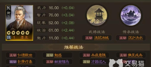 戏志才自带战法效果同样是单体输出,并且能使其进入到行异状态,在此状态下对方只要移动位置就会受到伤害,所以和该战法搭配起来最为妥当。本来因为战法效果非常独特,受到限制很多,但是组合起来就成为很出色的搭配。娄圭擅长在战场上铸造城池,影响附近敌军,除了降低其造成的伤害之外,还会额外消耗移动力。和诱敌深入搭配起来之后就可以将敌人强制性拉到冰城附近,这样即使释放位置不妥当,也能发挥出作用。