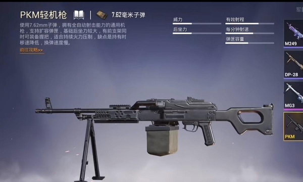 游玩到此想必大家对这里的所有枪械都有体验过吧,那么在对战中你更喜欢使用哪种类型的武器呢,这次要分享的是和平精英pkm轻机枪好用吗,没错,后面将会登场新的武器,还是轻机枪,对于这个类型的枪械各位应该有见识过的,它可以进行很好的火力压制,那么具体内容请看以下分享。