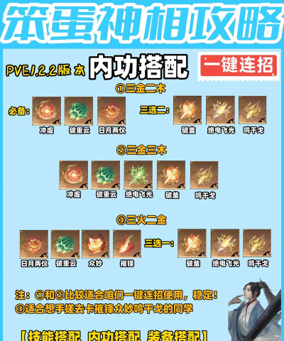 “关山月”,可以对敌人造成浮空效果,单体必备技能。“飞羽空蝉”,释放可得一个冰和火音符,副本必备技能。“碧涧流泉”,两段伤害,首先对敌人造成冰音波伤害其次是对扇形范围敌人造成伤害。“云山万重”,适合阻挡敌人进攻和后退,防守团必备技能。“鸿衣羽裳”,使用后可以增加内功的伤害,属于pve技能。