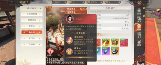 最后一个燕龙渊就是擅长使用擒龙功的一个角色,大家要注意不能离燕龙渊太近,太近容易被它抓过去,抓过去之后造成的伤害也是比较大的,而且容易被它各个击破,大家最好带上一个群体治疗会比较好。