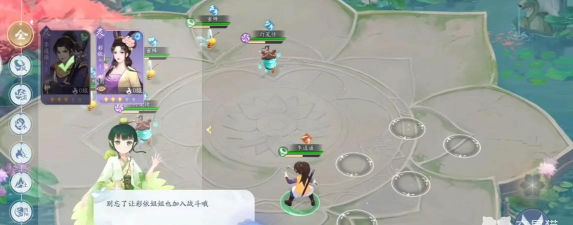 2-2地图主要怪物是蜜蜂与蓝色蛇,怪物数目较多,但是血量不厚,可以用多回合方式轮流打。战斗后小草为玩家提供站位与侠客仙术技能效果的指点,布阵里面的1号位是队伍中的主要承伤位,李逍遥站在1号位的仙术技能只能攻击到敌方的前排,没有击败敌方前排的情况下无法攻击到后排,所以战斗会那么吃力。通关2-2地图就能开启招募队友,获得系统送给玩家的水属性群攻法师。
