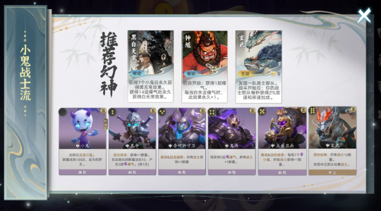 【幽都】 :以“忘川迷瘴,阴司百鬼”为标签,其核心资源为 【瘴气】 与特殊部从 【小鬼】。瘴气可以为己方全体单位提供攻击与生命加成,层数越高,增益越强。而积累100个小鬼,则可召唤出终极战力“阎罗”,实现战力的颠覆性飞跃。