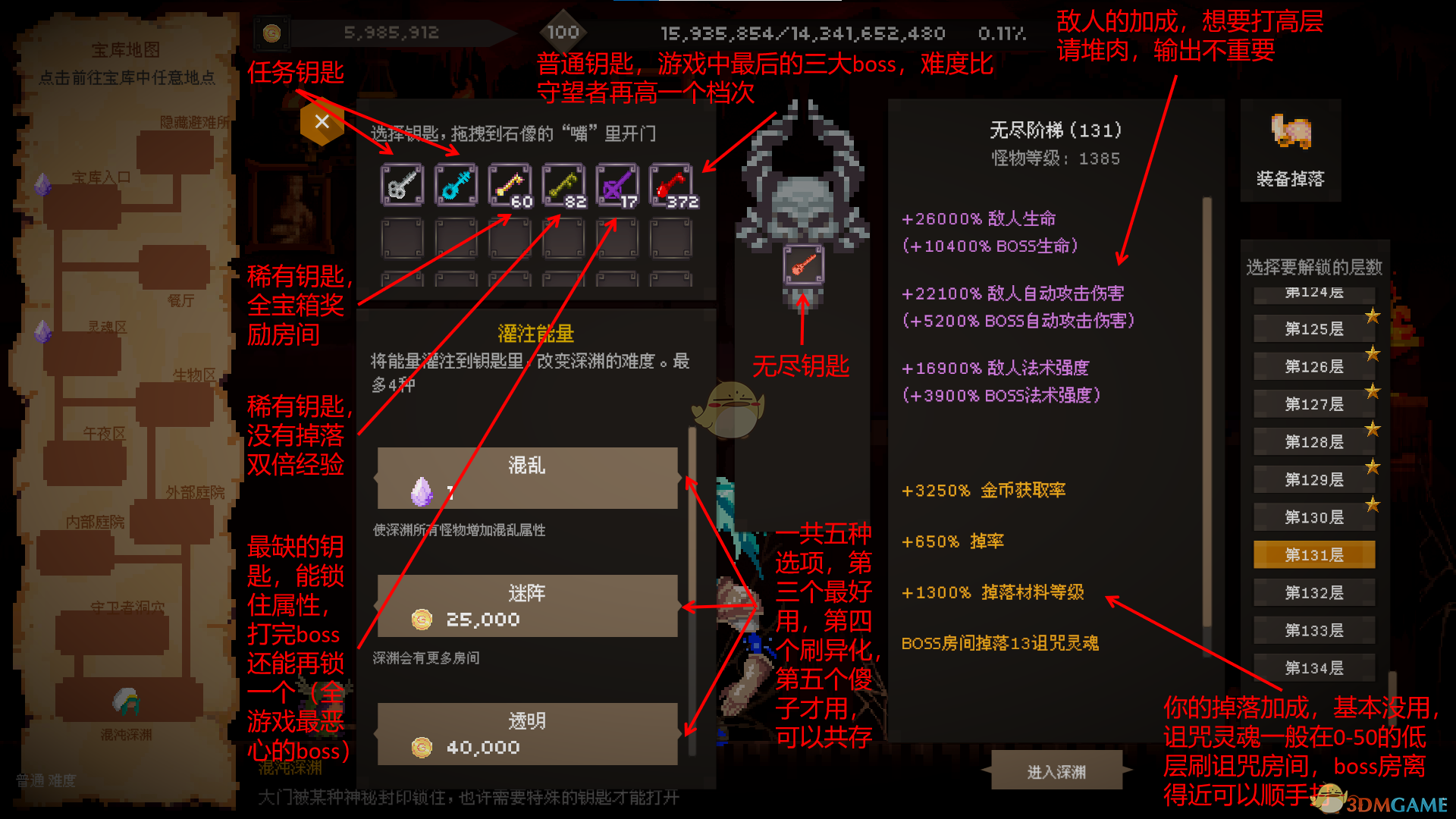 图中可以看出,无尽只加成敌人的血量和攻击,一般来说坦度远比输出重要,20W血75%全抗性/坦克格挡/闪避足以很轻松的打到200-300层,再往后就要用一些特殊的构筑了。